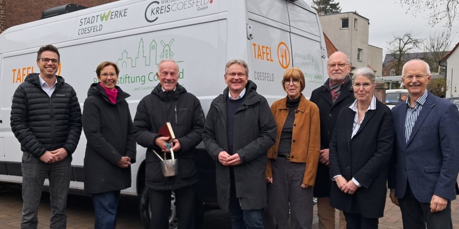 Ein neues E-Kühlfahrzeug der „Tafel“ ist ab sofort auf den Straßen in Coesfeld und Umgebung unterwegs, u.a. finanziert durch eine Förderung der Bürgerstiftung Coesfeld.