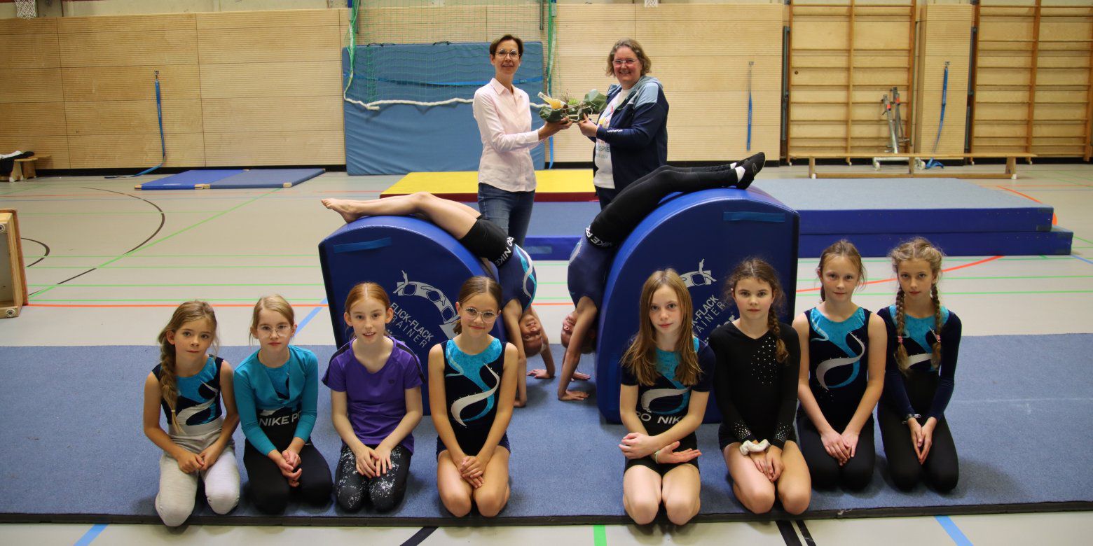 Im Rahmen des "Turntags" bestanden die beiden Übungshilfen ihre Bewährungsprobe mit Bravour. Mit einem kleinen Präsent bedankte sich die Leiterin der DJK-Turnabteilung, Alexandra Weitenberg, bei Gisela Schulze Tast von der Bürgerstiftung Coesfeld.